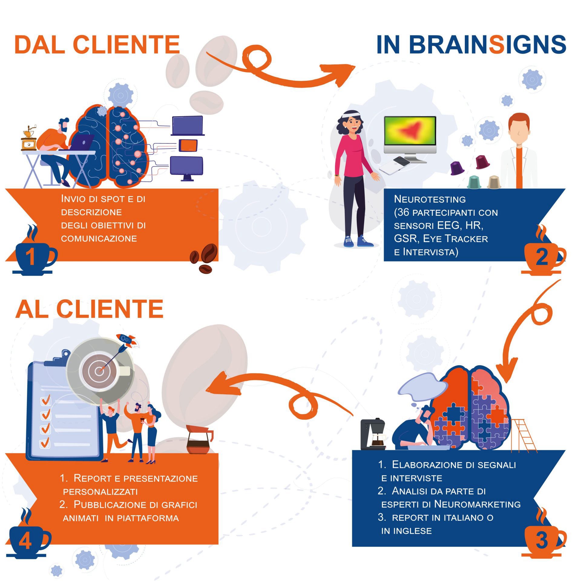 BrainExpresso consente alle aziende di valutare preventivamente l’efficacia delle loro pubblicità attraverso tecniche di neuromarketing basate sulla lettura di segnali cerebrali, battito cardiaco e sudorazione della pelle tracciamento dello sguardo e intervista. In modo ricorrente, almeno 3 volte all’anno, BrainSigns offre questo servizio in cui possono essere messi in test contemporaneamente più spot commerciali di più aziende.